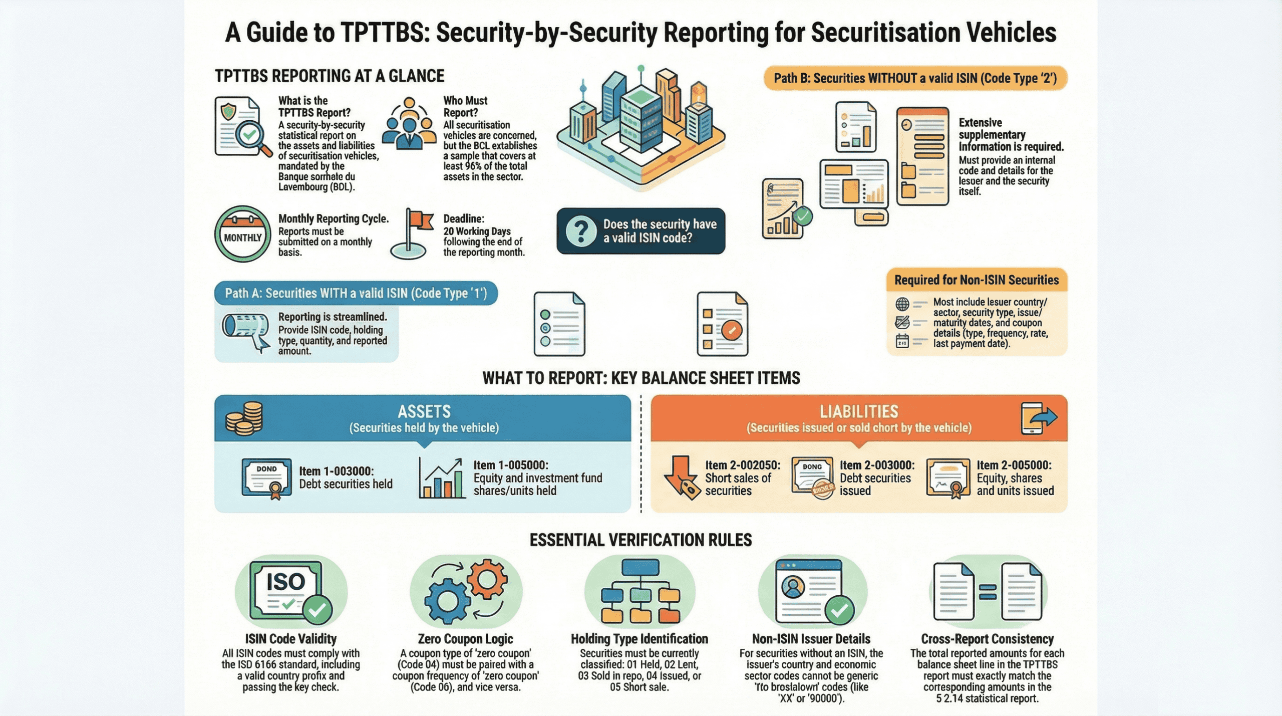 The primary operational challenge lies in the extreme complexity and granularity of these requirements, particularly within the TPTTBS report. A critical distinction is made between securities identified by an ISIN code and those without, with non-ISIN securities requiring a significant volume of supplementary data, including issuer details and coupon characteristics.
